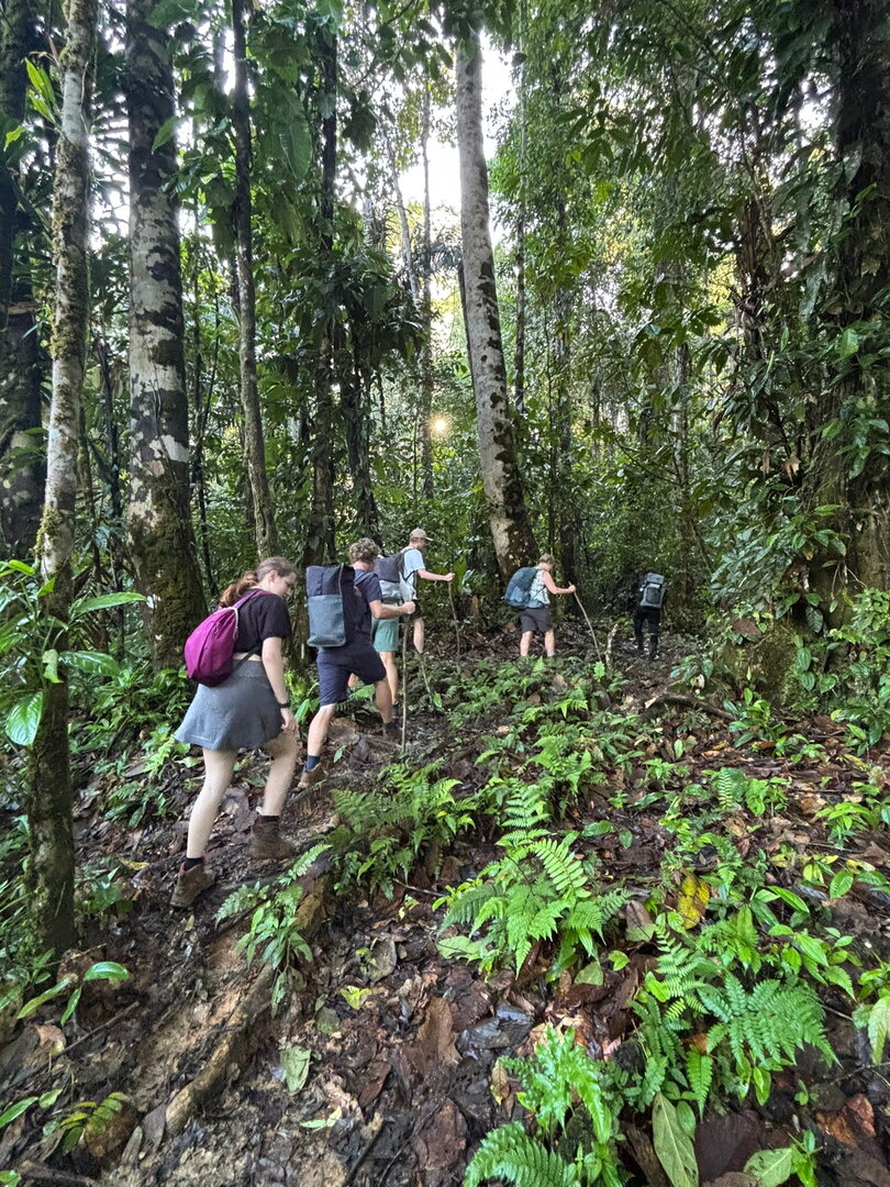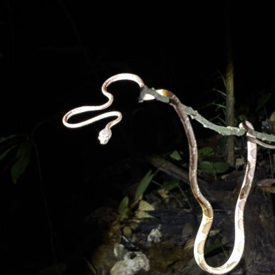 After sunset we depart from Sabalo Lodge for an approximately 30-minute drive into the mountains to Finca Encanta, where the rainforest reveals a very different atmosphere than in the lowlands and where biodiversity is even richer. This advanced night excursion is designed for confident and physically fit guests. Trails can be humid and occasionally muddy, and conditions are natural and unpredictable. What you encounter is never guaranteed — frogs, insects, reptiles, or nocturnal mammals — nature decides what she reveals. Groups are usually small (2–5 people) to maintain a quiet and respectful experience, and the guide reserves the right to shorten the route if any participant experiences difficulty. Please be ready at reception after dark, wear sturdy shoes, long trousers and long sleeves, and bring a reliable headlamp or flashlight (mobile phones are not sufficient). Move quietly at all times and avoid touching tree trunks or branches, as you never know what may be resting on the other side; watch for thorns and snakes.
