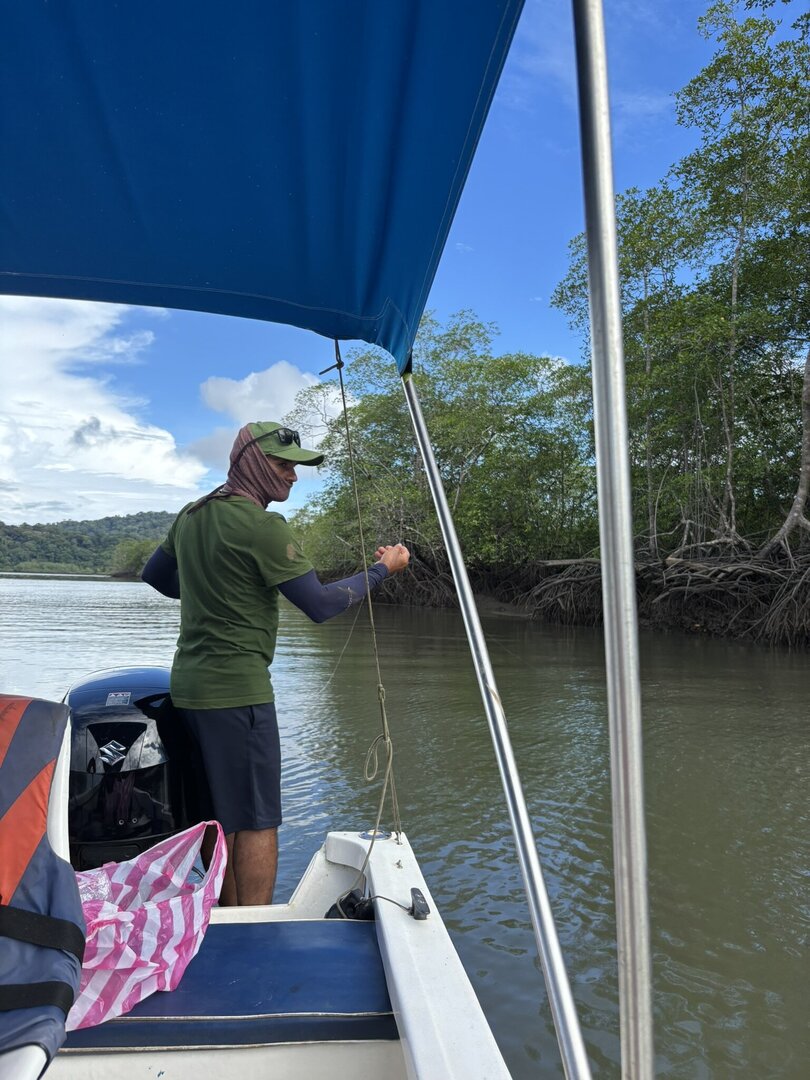 The rainforest comes alive after dark. This guided walk follows flat coastal jungle terrain similar to the trails around Sabalo Lodge, but in a wilder setting beyond our property. What you see is always up to nature — frogs, insects, spiders, snakes, or perhaps mammals moving silently through the trees. The ground may be damp or muddy, and the air filled with jungle sounds. This excursion is for confident, physically fit guests. Groups are small (2–5 people), and the guide may shorten the route if needed. Please move quietly and respectfully. Wear sturdy shoes, long sleeves and trousers, and bring a reliable flashlight (not a mobile phone). This is real jungle — authentic, unpredictable, unforgettable.
