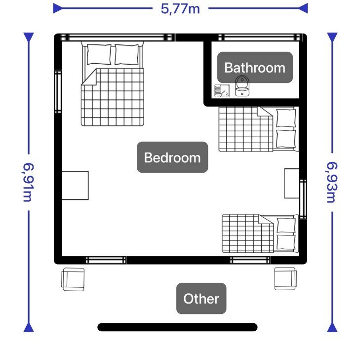 - One double bed, two single beds, private terrace with hammock, elevated structure on stilts, WiFi access