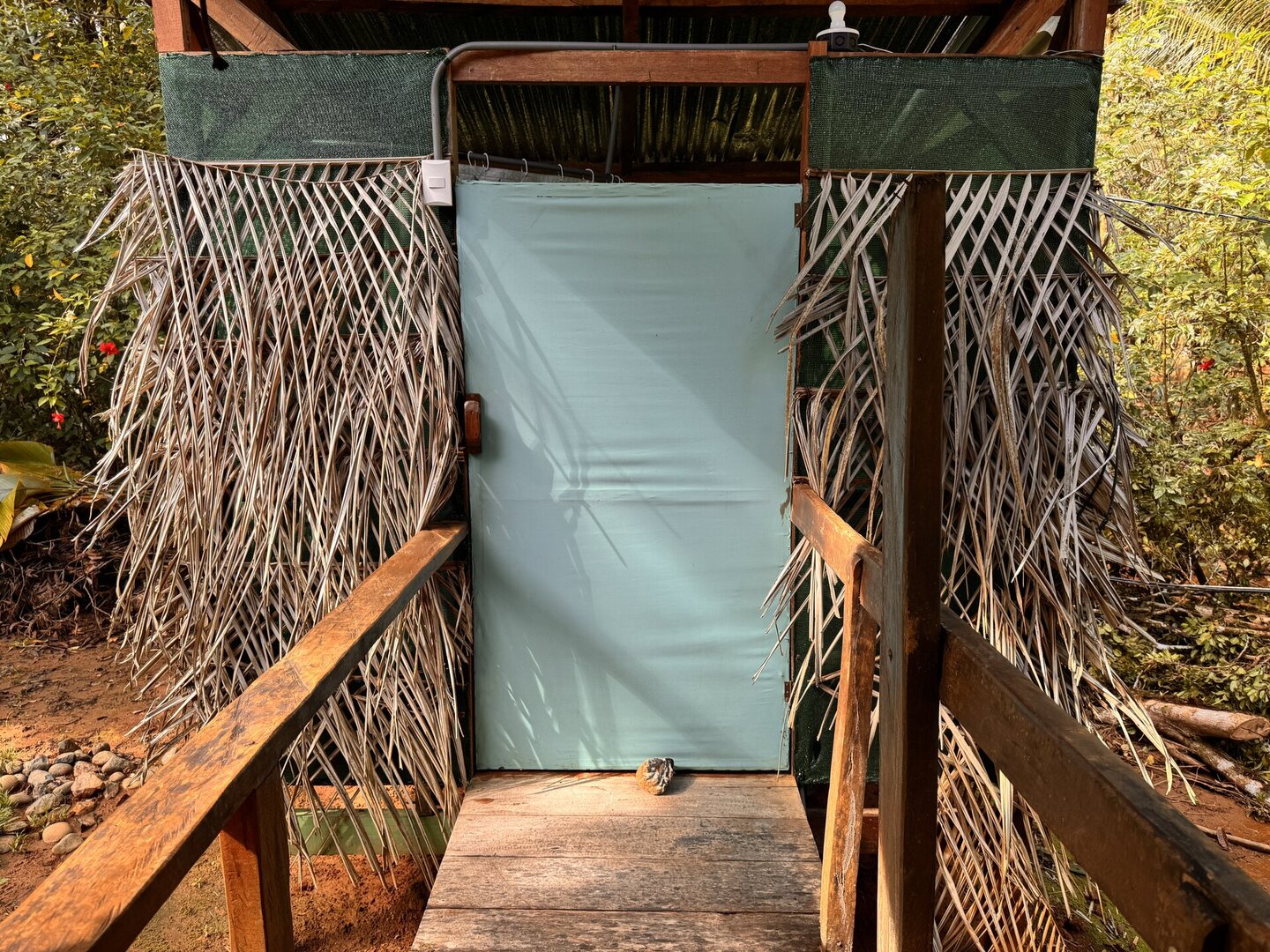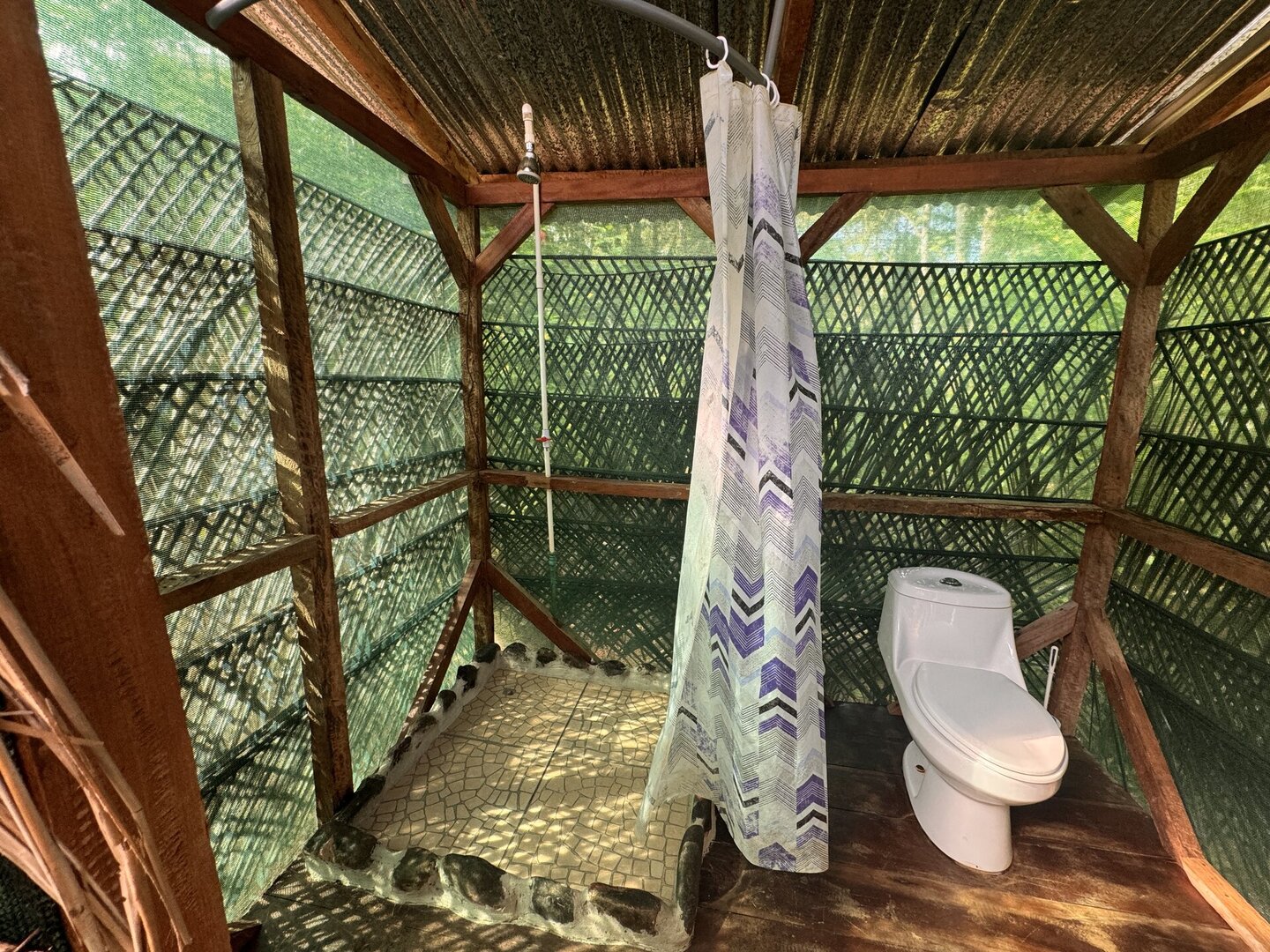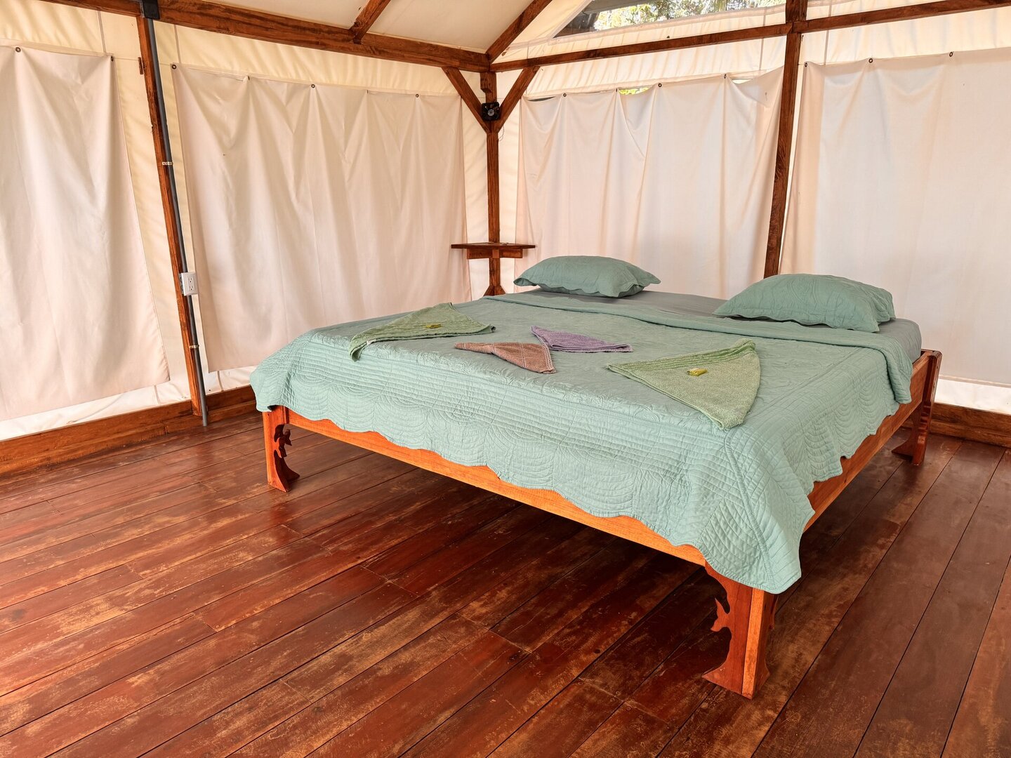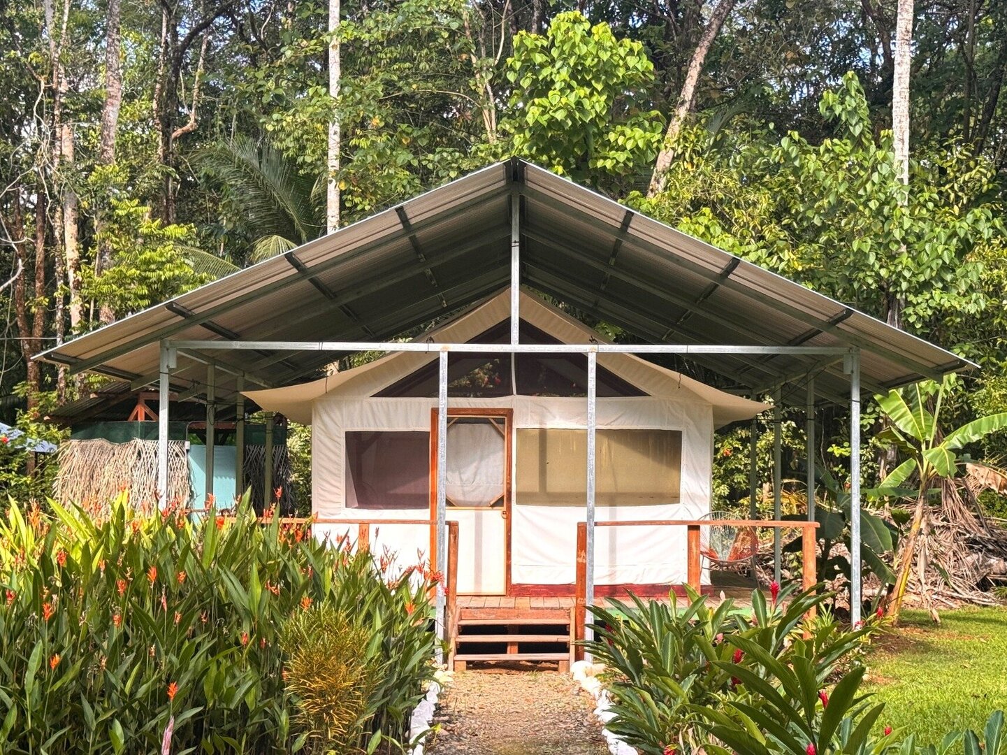 Peaceful jungle tent for 2 guests near the main entrance, with private bathroom, shaded setting and frequent toucan visits.