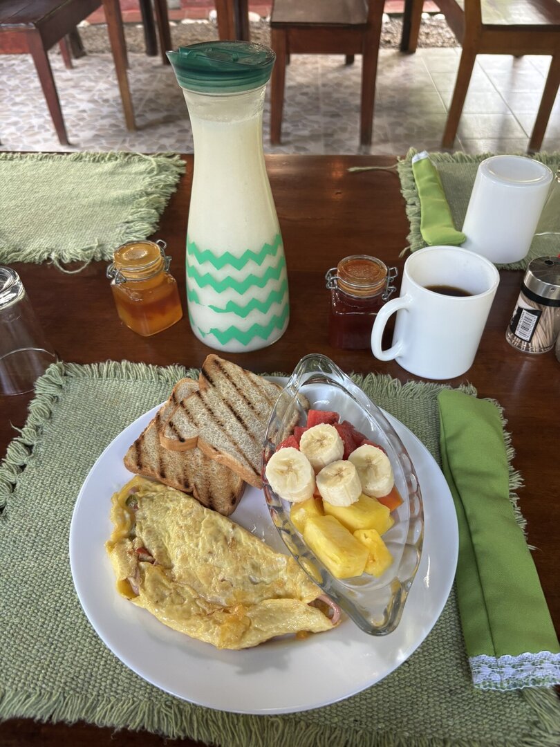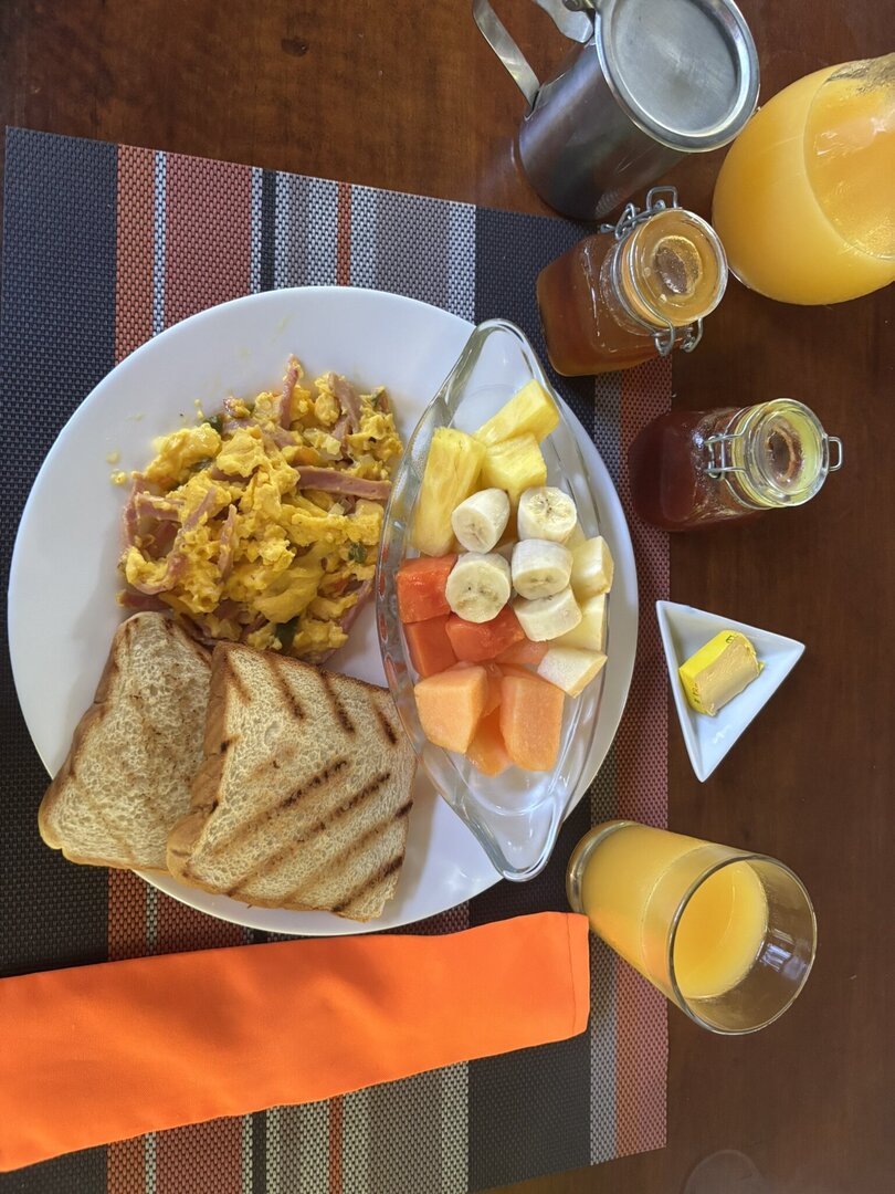 Each meal includes a drink (fresh juice, coffee, tea, water). You also have unlimited access to chilled water during the day (with or without ice, lemon on request). Want to try local fish? Tell us on arrival — Angelica will arrange fresh catch, or you can go fishing with our guide Melwin and have your catch cooked.